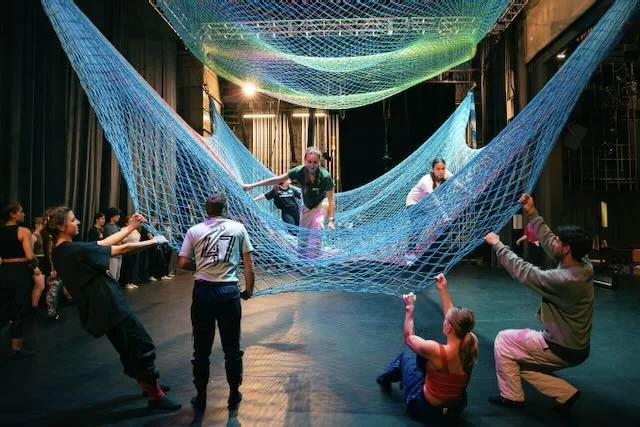 The culmination of a 5-year collaboration, NOLI TIMERE, Latin for "be not afraid," renders interconnectedness visible and tangible, demonstrating – like the “butterfly effect” – how a change in one element generates cascading effects throughout an entire system. The visual design incorporates two 40 x 30-foot net sculptures suspended by a dynamic rigging system. As performers dance, fly and fall, the smallest shifts reverberate across the whole, offering a visceral demonstration of collective responsibility: how individual actions ripple outward, how trust enables flight, and how fragile beauty depends on care.
